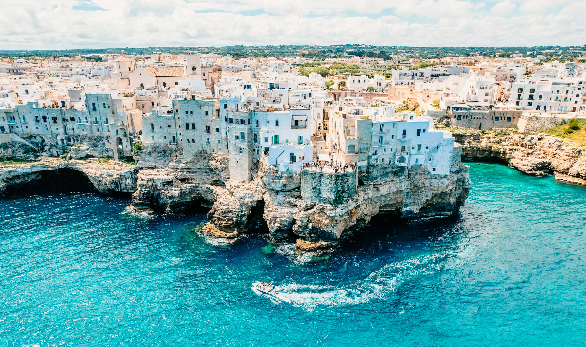 La Puglia è il confine del mondo, il tacco dello stivale d’Italia, bagnata da due mari: l’Adriatico e lo Ionio. Qui tutto è diverso: le case sono imbiancate a calce per riflettere il sole cocente, gli uliveti si estendono fino all’orizzonte e la costa è frastagliata da grotte e scogliere che rivaleggiano con la bellezza di qualsiasi spiaggia caraibica. La Puglia è rimasta a lungo all’ombra delle regioni settentrionali, ma oggi è una meta per chi desidera vivere l’autentica vita italiana: senza fretta, generosa e incredibilmente fotogenica.